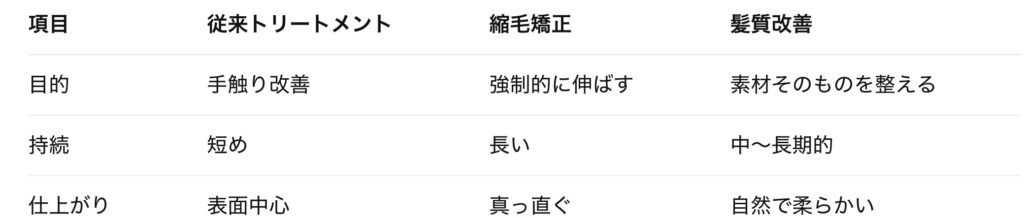 髪質改善と従来の縮毛矯正・トリートメントの違いとメリット