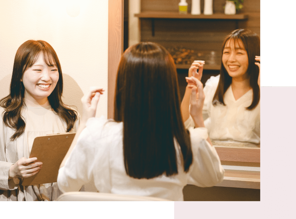 施術後は、日常のスタイリング方法もアドバイスいたします。スタイリングが苦手な方も安心してご相談ください。